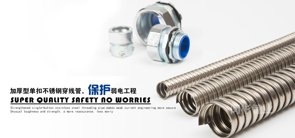 除此之外,公司還致力于金屬軟管接頭,普利卡管,普利卡接頭,不銹鋼穿線管的銷售。公司本著品種多、質量優、服務好的宗旨,不斷開發、創新產品,以滿足日益發展的市場需要。產品主要包括:金屬軟管接頭 ,橋架接頭,塑料軟管接頭,AD接頭,不銹鋼接頭,普利卡接頭,包塑金屬軟管,不銹鋼軟管,不銹鋼編織軟管,普利卡軟管,尼龍軟管,塑料波紋管,尼龍拖鏈等機床配件。產品廣泛應用于建筑、機床、鐵路、車輛、化工、汽車、監控、建筑裝修、建筑裝飾、建材、裝修裝飾等行業。上海閔彬管業有限公司高質量包塑管在實際使用中多家工程單位的認可、使用與推廣。